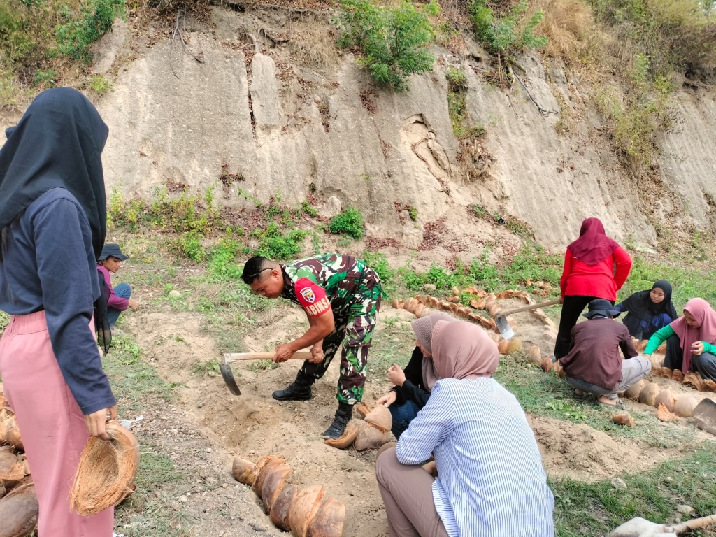 Babinsa dan Mahasiswa Undikma Sulap Halaman Desa Jadi Taman Asri
