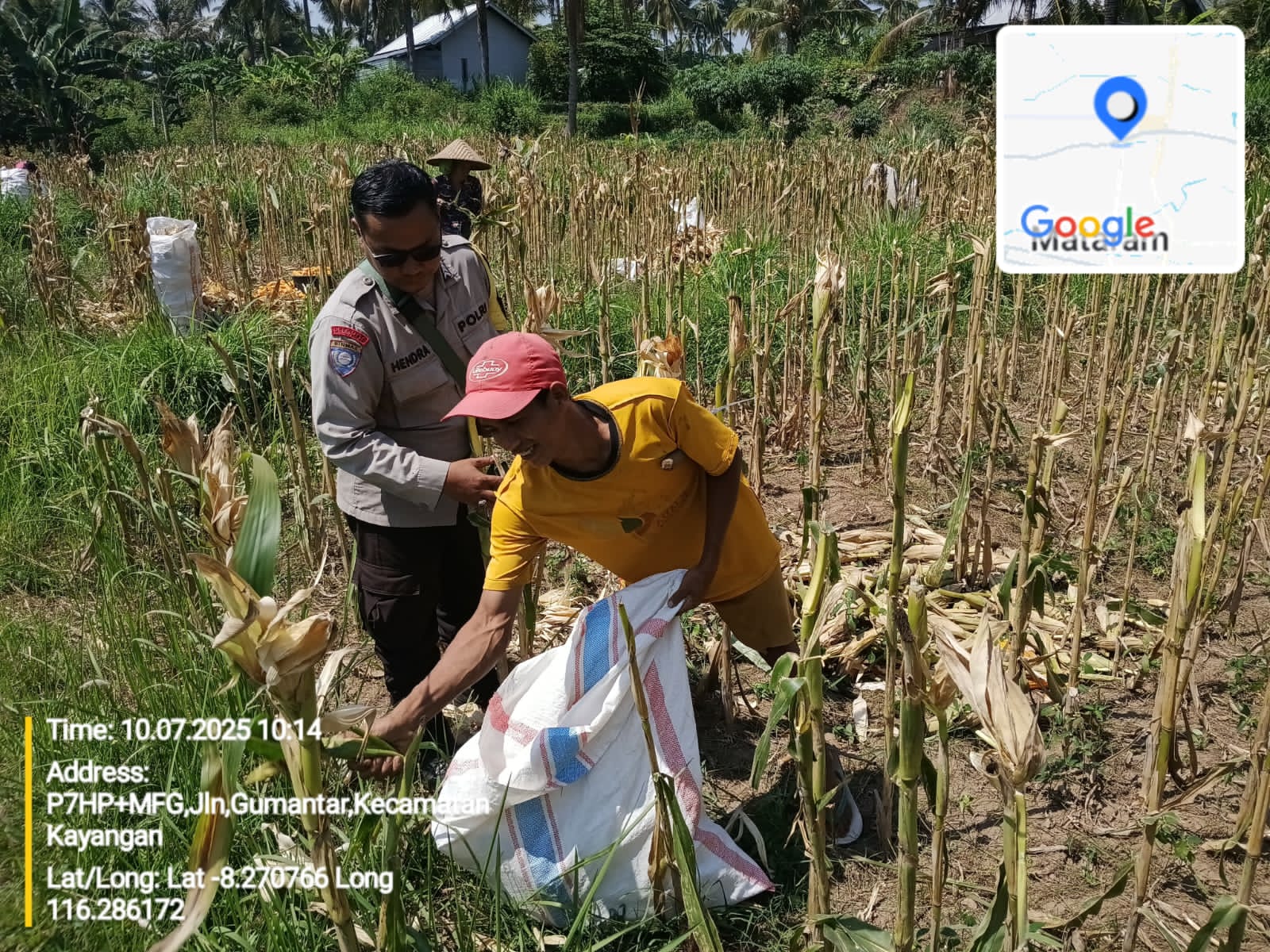 Bhabinkamtibmas Desa Gumantar Dampingi Panen Jagung Lanjutan Kuartal III Sebagai Wujud Dukungan Program Ketahanan Pangan