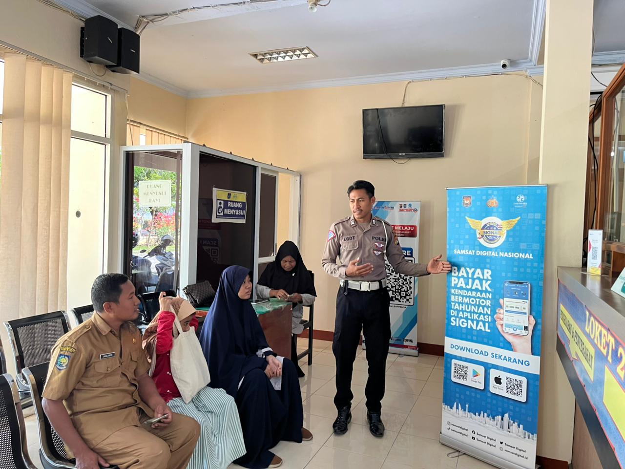 Dalam kegiatan tersebut, personel Satlantas memberikan sosialisasi mengenai tata cara pembayaran dan perpanjangan pajak kendaraan bermotor, pelayanan Buku Pemilik Kendaraan Bermotor (BPKB), serta alur pembuatan Surat Izin Mengemudi (SIM). Edukasi diberikan secara langsung dan komunikatif agar mudah dipahami masyarakat.