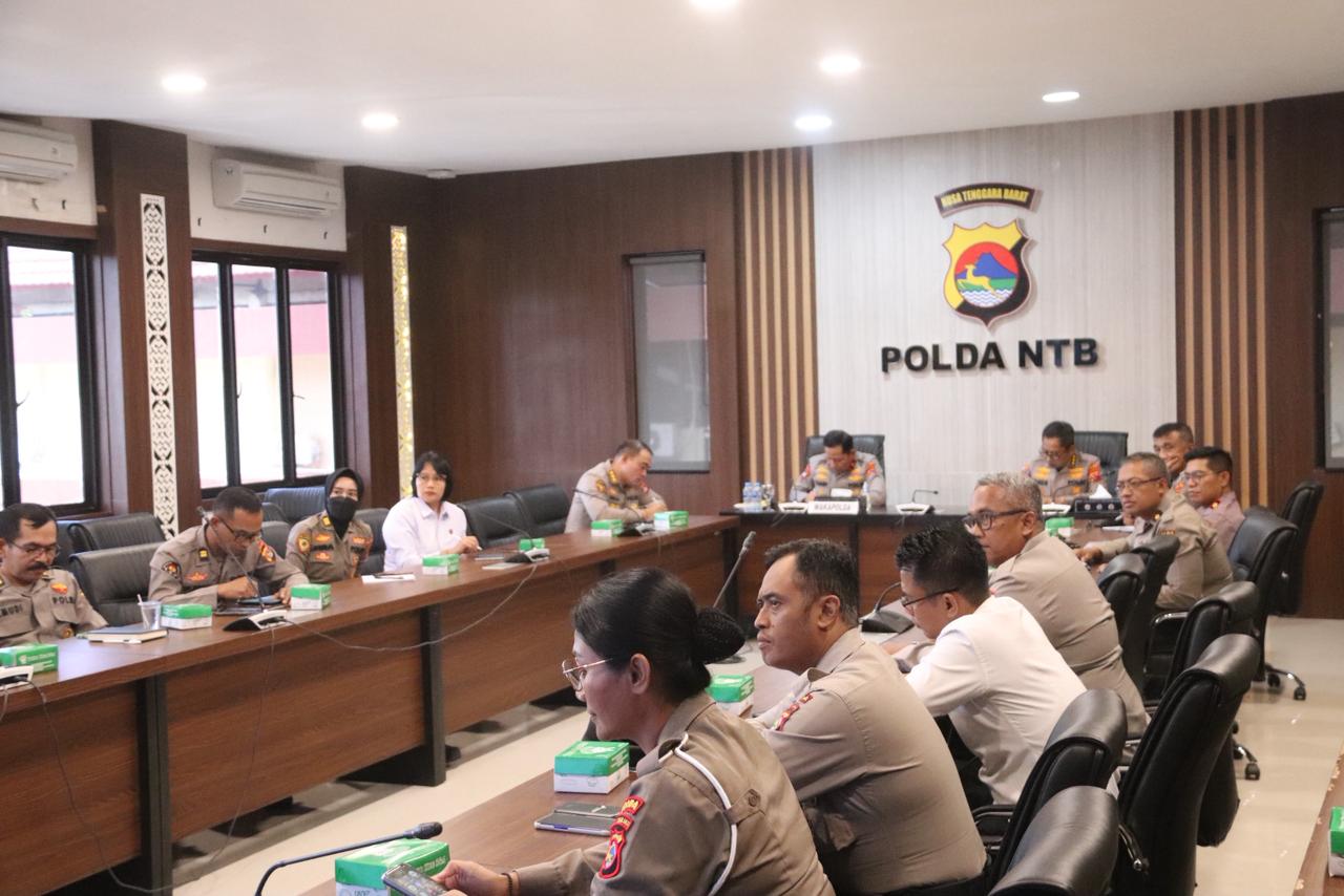 Mataram— Polda NTB menggelar Launching Program Polri untuk Masyarakat IV Tahun 2025, Senin (3/11/2025) pagi, sekaligus Analisa dan Evaluasi (Anev) Quick Wins Presisi Polri 2025, yang berlangsung secara zoom meeting. Kegiatan itu dipimpin langsung Wakapolda NTB Brigjen Pol. Hari Nugroho, S.I.K., didampingi Irwasda Polda NTB di ruang Presisi Polda NTB.