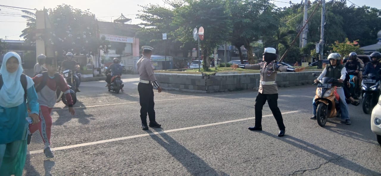 “Personel membantu menyeberangkan anak-anak sekolah, pengguna jalan baik pejalan kaki maupun pengendara kendaraan roda dua dan roda empat, serta masyarakat yang beraktivitas pada pagi hari,” jelasnya.