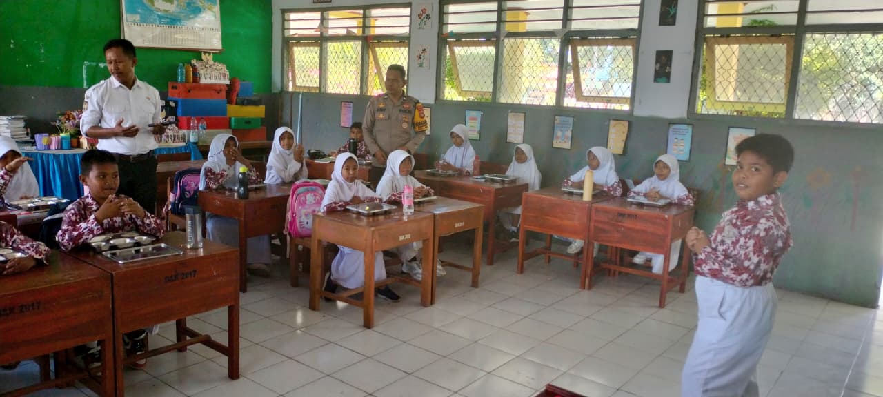 Bhabinkamtibmas Memonitor Pendistribusian Makan Bergizi Gratis (MBG) di Sekolah Dasar Kota Bima