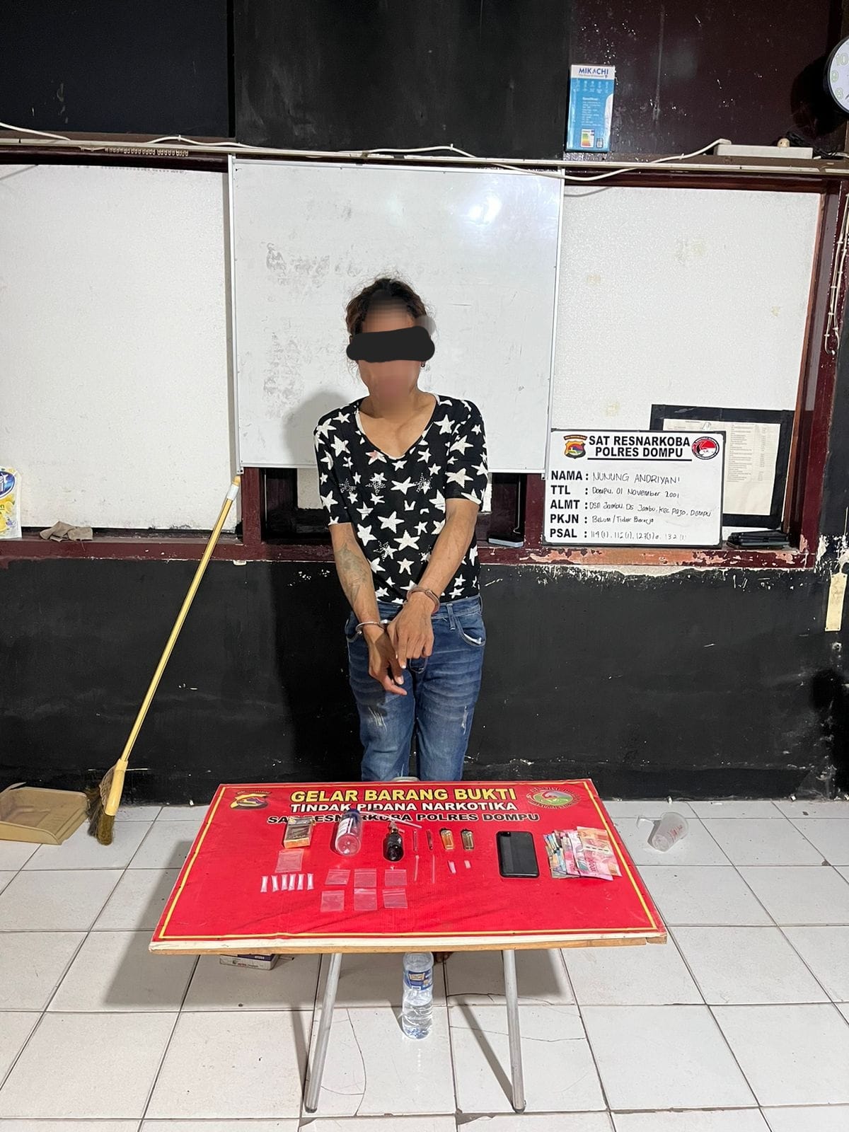 Satresnarkoba Polres Dompu kembali menunjukkan komitmennya dalam memberantas peredaran narkoba di wilayah Kabupaten Dompu. Pada Selasa dini hari (02/12/2025) sekitar pukul 04.00 Wita, Tim Opsnal yang dipimpin KBO Satresnarkoba IPDA Sumaharto berhasil mengamankan seorang terduga pengedar narkotika jenis sabu di sebuah kos-kosan di Dusun Lanta, Desa Rasabou, Kecamatan Hu’u, Kabupaten Dompu.