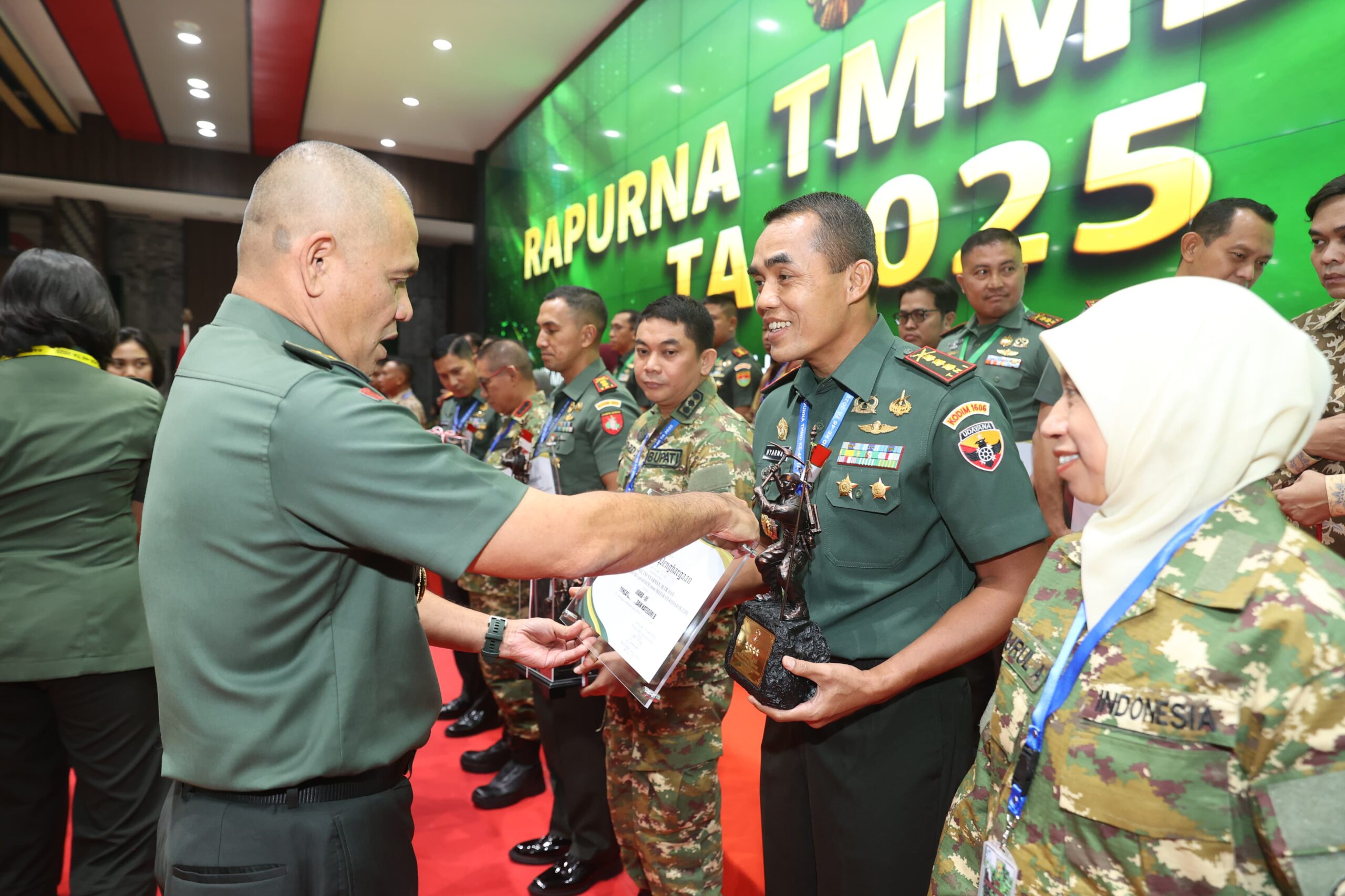 Pada kesempatan itu, Kodim 1606/Mataram berhasil meraih Juara Tiga Kategori Komandan Satuan Tugas (Dan Satgas) Terbaik Tipe B, sebuah pencapaian yang menjadi bukti kuat komitmen TNI dalam membangun daerah dan memperkokoh kemanunggalan dengan masyarakat.