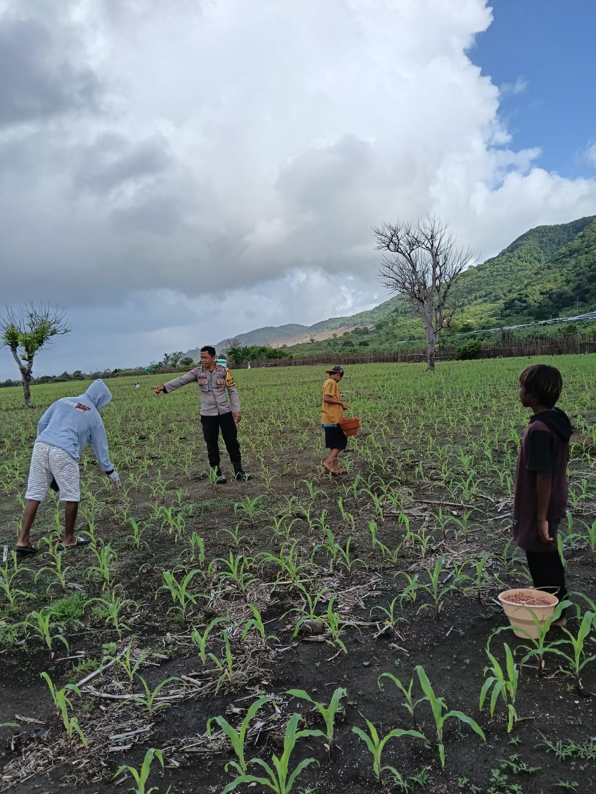 BHABINKAMTIBMAS HU’U DAMPINGI PETANI JAGUNG, DUKUNG PROGRAM KETAHANAN PANGAN MENUJU INDONESIA EMAS 2045