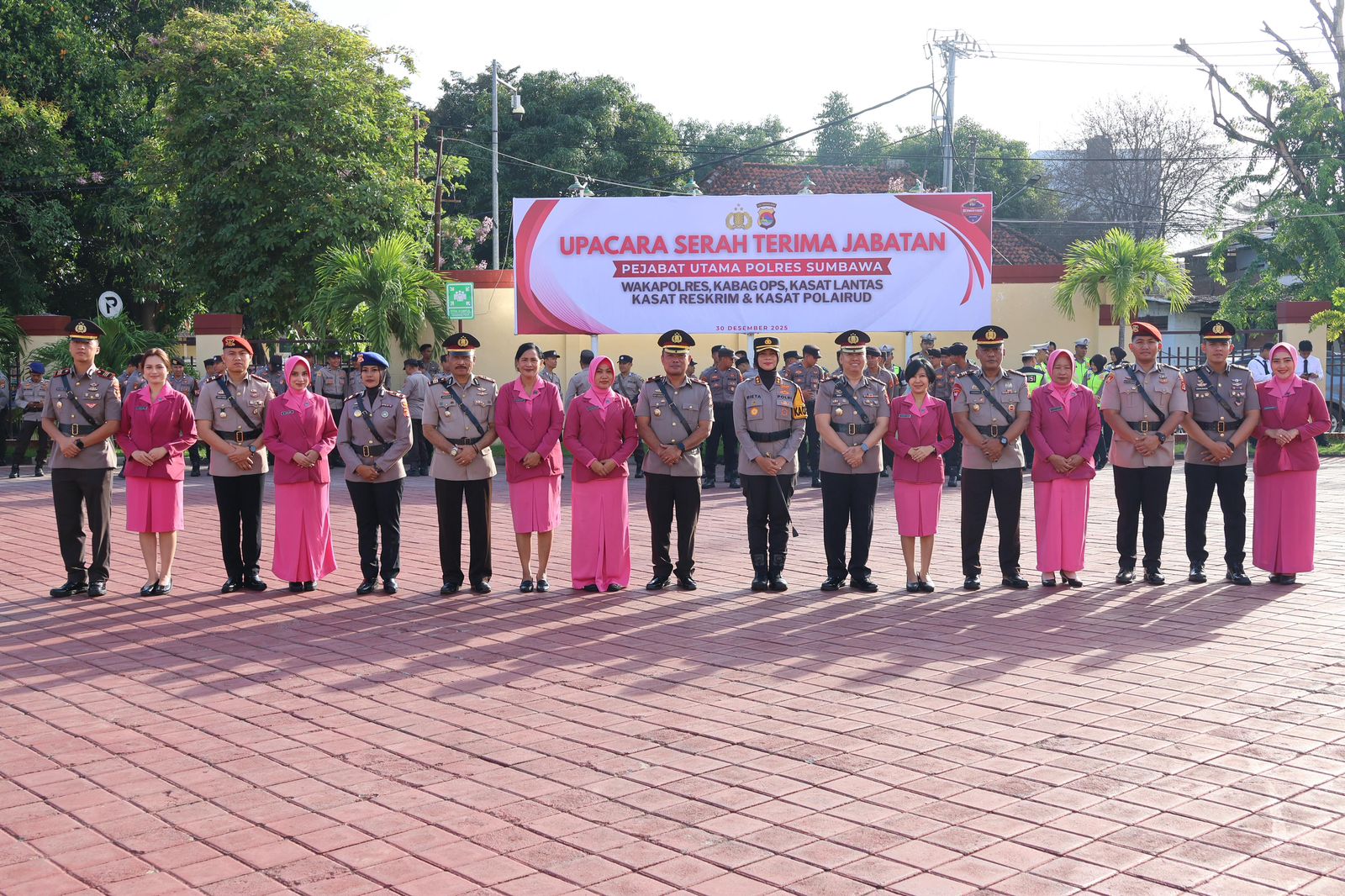 Sumbawa Besar, NTB — Menjelang penghujung tahun 2025, Kepolisian Resor Sumbawa melakukan penyegaran organisasi melalui Upacara Serah Terima Jabatan (Sertijab). Upacara ini dipimpin langsung oleh Kapolres Sumbawa, AKBP Marieta Dwi Ardhini, S.H., S.I.K., bertempat di Lapangan Wicaksana Laghawa, Selasa pagi (30/12/2025).