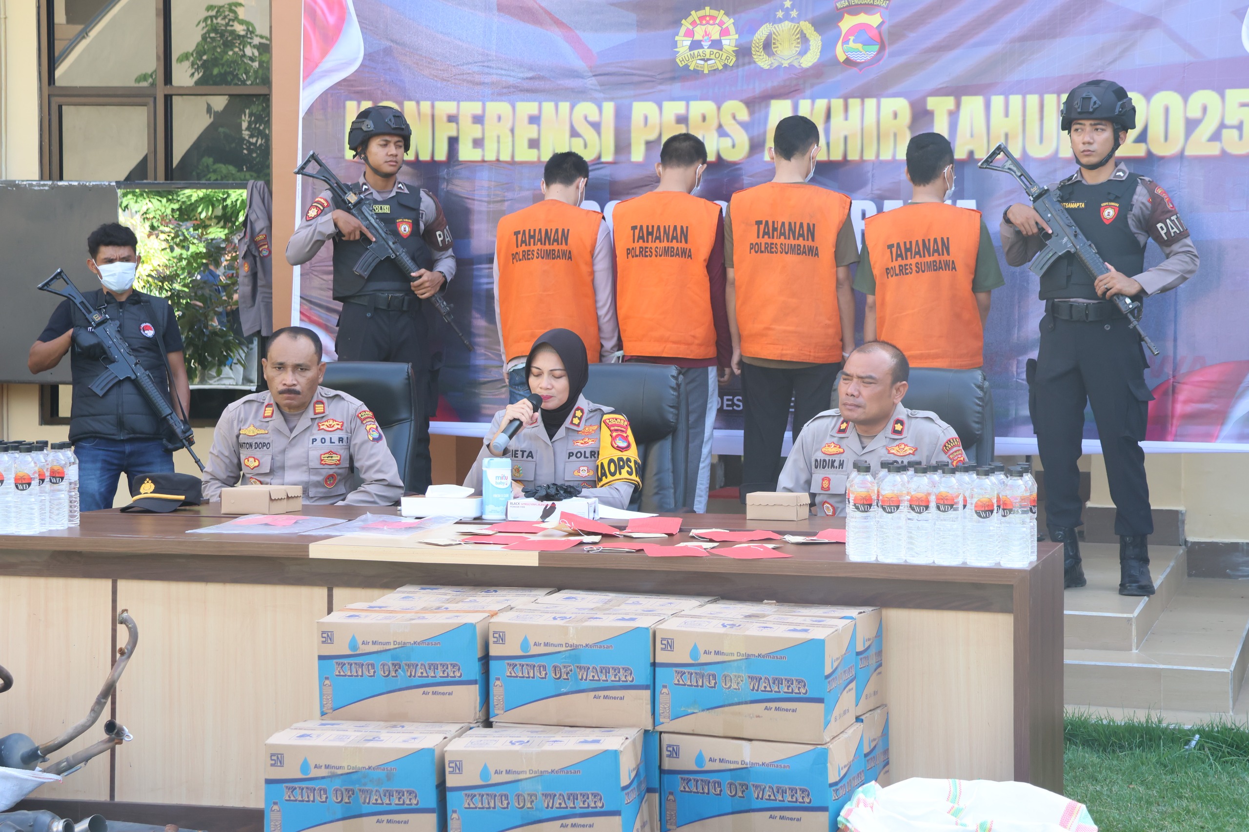 Sumbawa Besar, NTB — Menutup kalender kamtibmas tahun 2025, Kepolisian Resor Sumbawa menggelar Konferensi Pers Akhir Tahun guna memaparkan capaian kinerja dan pengungkapan kasus selama satu tahun terakhir. Kegiatan ini dipimpin langsung oleh Kapolres Sumbawa, AKBP Marieta Dwi Ardhini, S.H., S.I.K., bertempat di Lapangan Hijau Mapolres Sumbawa, Rabu pagi (31/12/2025).