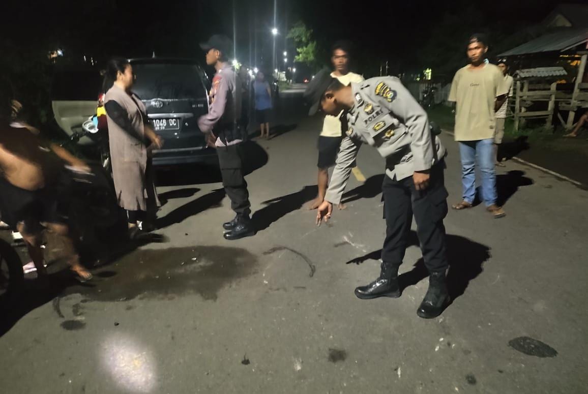 Pengendara SPM mengalami luka robek pada lutut, luka tergores pada lengan kanan, luka bengkak pada wajah bagian pipi kiri dan nyeri di kepala, saat sedang di rawat di PKM Bolo.
