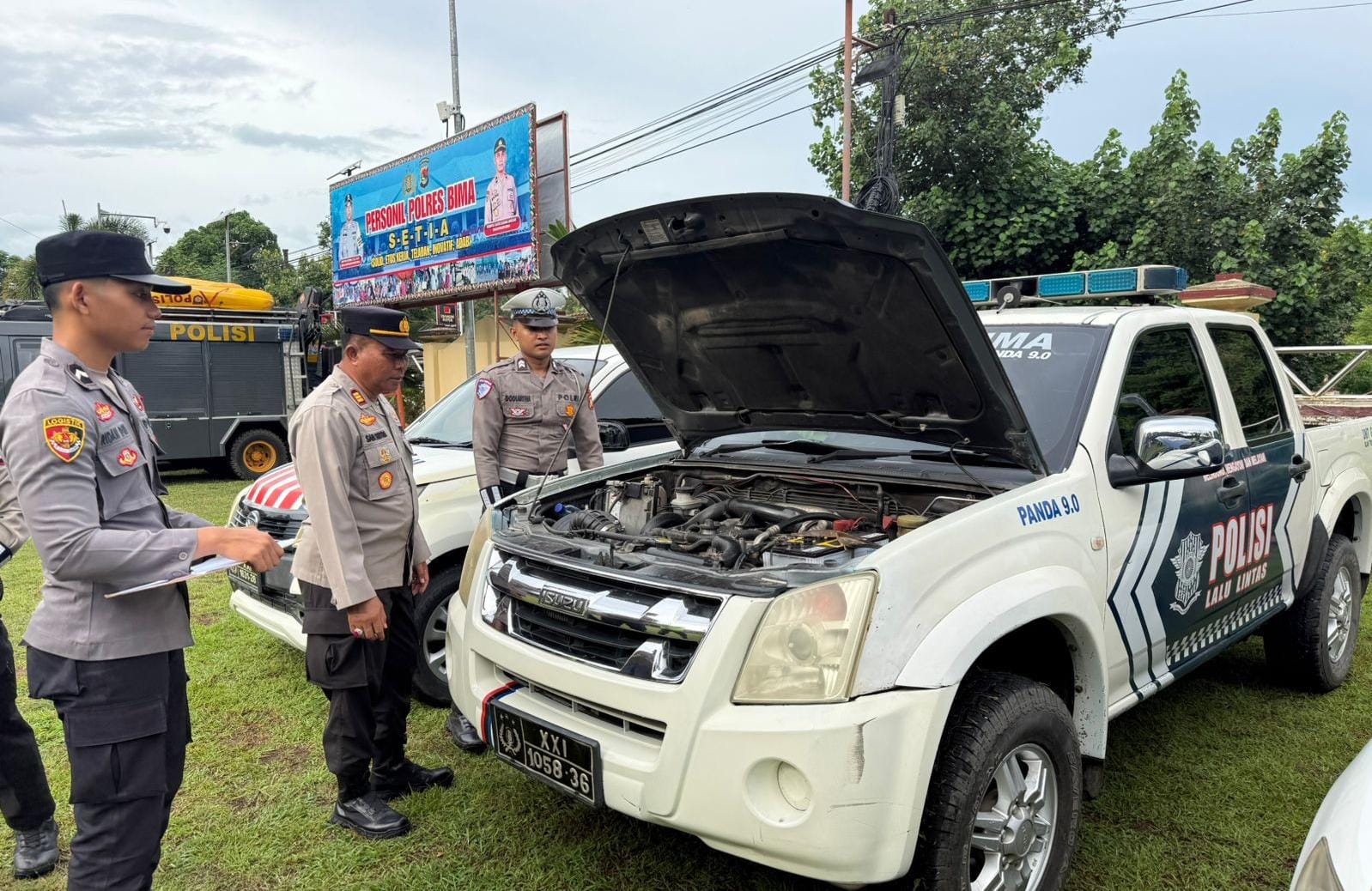 Pastikan Kesiapan Operasional, Bag Log Polres Bima Menggelar Pemeriksaan Senpi dan Kendaraan Dinas