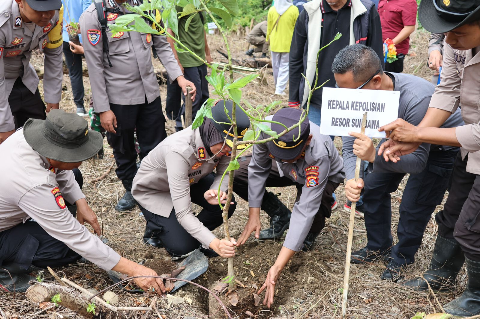 “Mari kita menanam sesuatu yang bermanfaat untuk jangka panjang agar bisa dinikmati oleh anak dan cucu kita. Jangan ada lagi aksi illegal logging, karena hutan kita sudah banyak yang rusak. Jika alam kita jaga, maka mata air akan tetap mengalir dan kita bisa meminimalisir dampak bencana alam,” ujar Kapolres di sela-sela kegiatan.