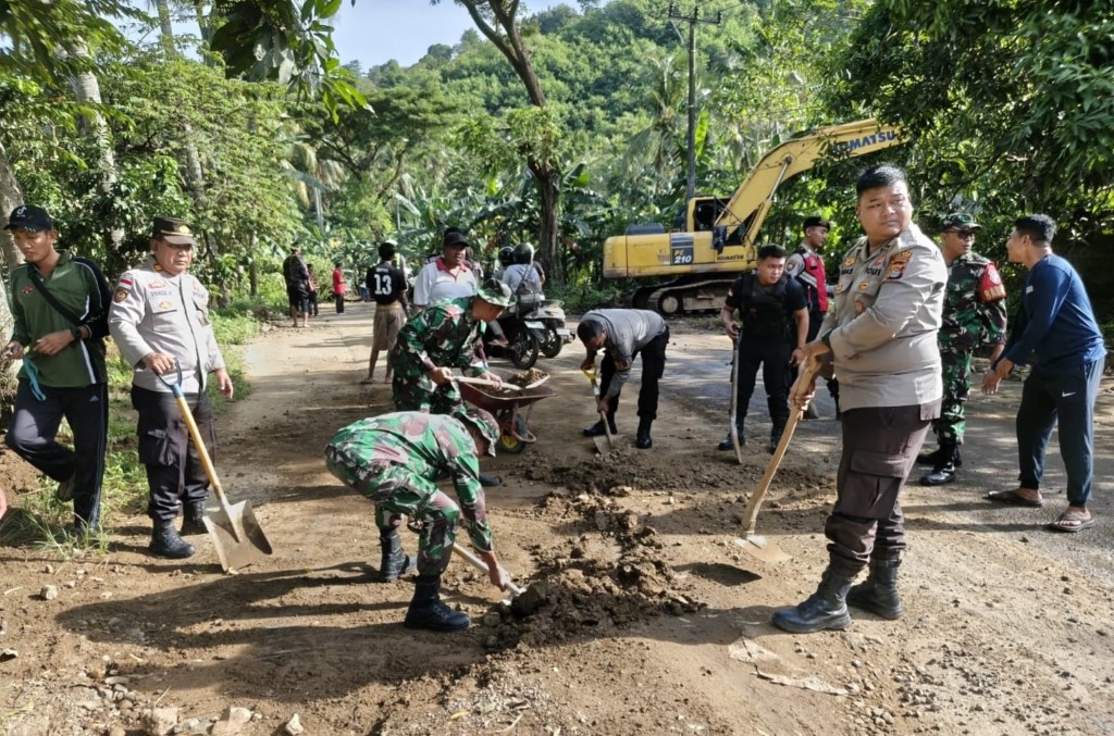 Dengan peralatan sederhana dan semangat kebersamaan, seluruh peserta bahu-membahu membersihkan material yang menutup badan jalan. Aksi gotong royong ini tidak hanya mempercepat proses pembersihan, tetapi juga mempererat sinergi antarinstansi dan masyarakat.