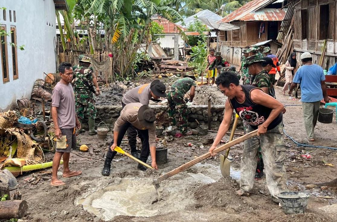 Dukung Program TMMD Ke-172 Anggota Sat Samapta dan Personel Polsek Monta Ikut Serta Bangun Rumah Warga di Desa Waro