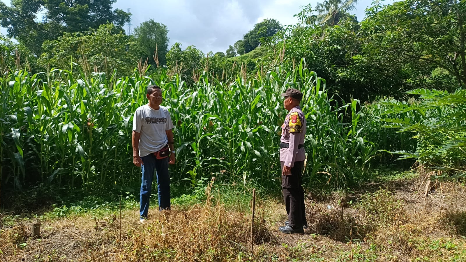 Dukung Ketahanan Pangan Nasional, Bhabinkamtibmas Desa Tarusa Sambangi Petani Jagung di Blok Palung