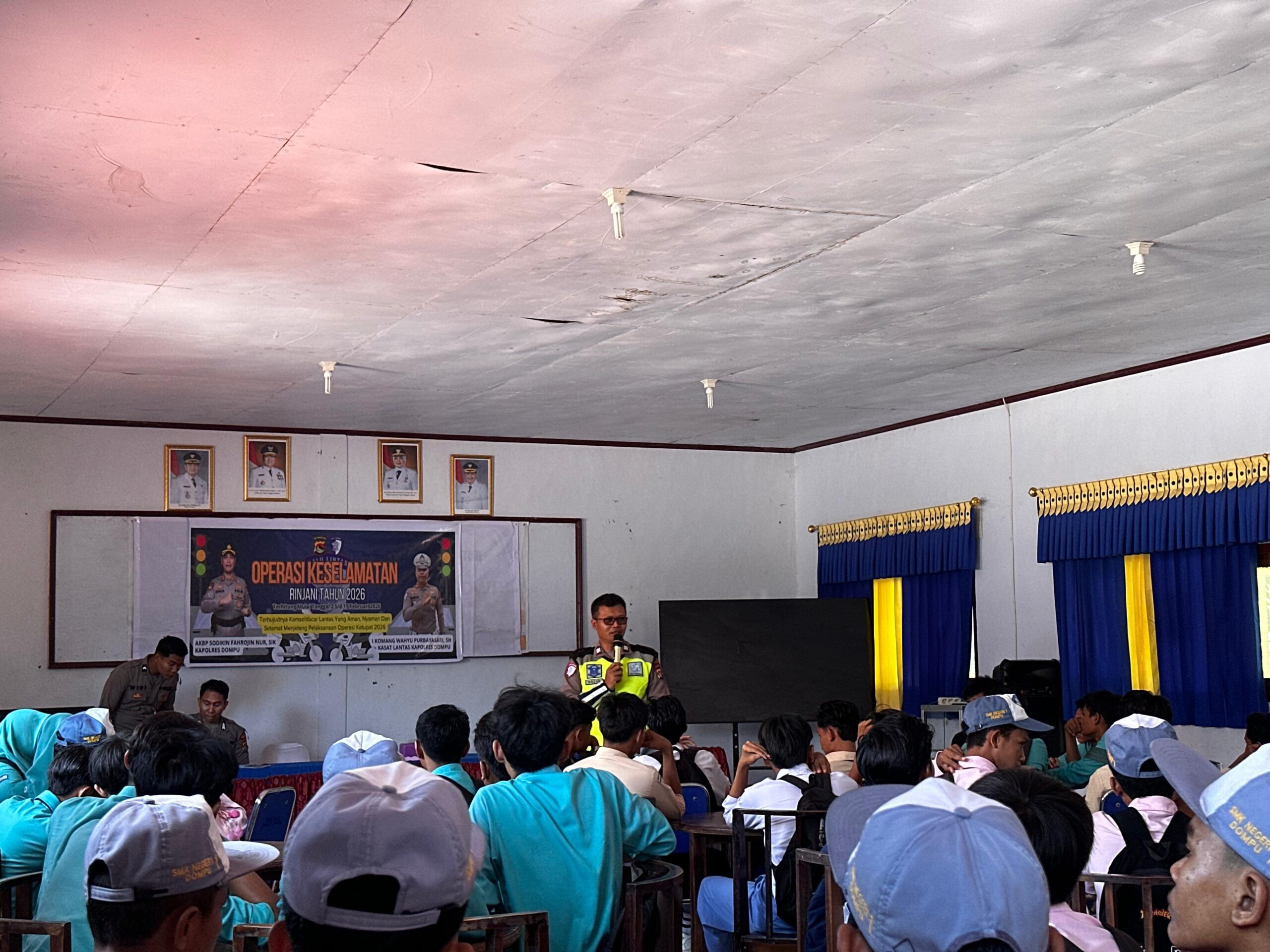 Kepolisian Resor Dompu melalui Unit Keamanan dan Keselamatan (Kamsel) Satlantas Polres Dompu melaksanakan kegiatan “Police Goes to School” di SMKN 1 Dompu, pada Rabu (11/02/2026).
