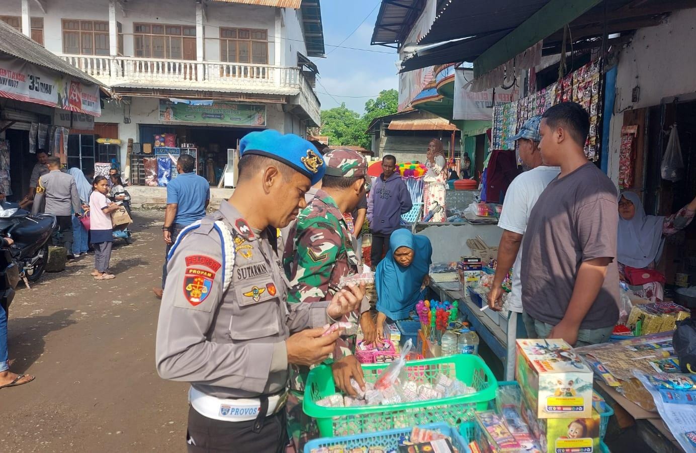 Dalam pelaksanaannya tim gabungan berhasil menyita puluhan petasan dengan berbagai jenis dari pedagang di pasar tradisional sila.