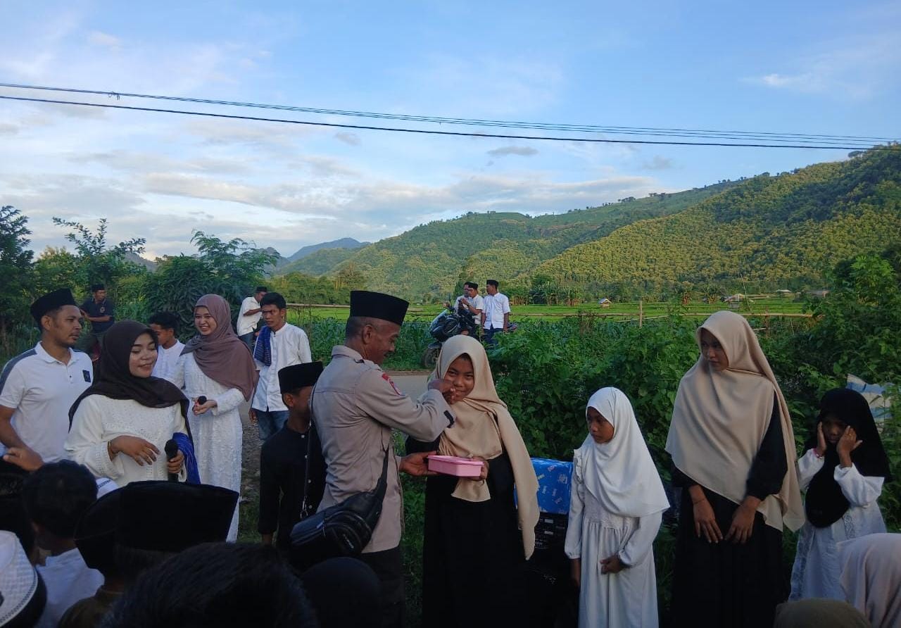 Bhabinkamtibmas Polsubsektor Palibelo Laksanakan Pengawalan dan Pengalaman Pawai Ta,Aruf di Desa Binaannya