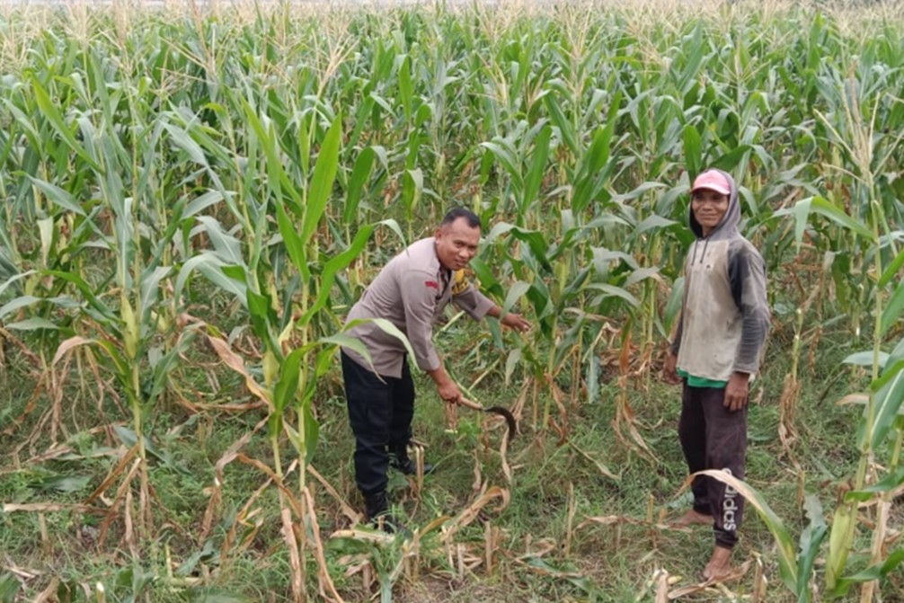 Tidak hanya berhenti di area persemaian, petugas juga menyisir area persawahan dan perkebunan terbuka. Di tengah hamparan tanaman jagung yang mulai menghijau, personel kepolisian memberikan arahan terkait pola tanam yang efektif. Bahkan, dalam suasana penuh kekeluargaan, petugas tidak segan membantu petani menggunakan alat pertanian tradisional untuk merawat tanaman. Kehadiran fisik ini menunjukkan bahwa Polri benar-benar memahami dinamika lapangan yang dihadapi oleh masyarakat agraris.