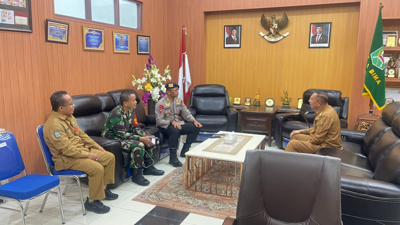 Pertemuan tersebut turut dihadiri oleh Dandim Kodim 1608/Bima sebagai bentuk soliditas unsur Forum Koordinasi Pimpinan Daerah (Forkopimda) dalam menjaga stabilitas keamanan dan ketertiban masyarakat (kamtibmas) di wilayah Kota Bima.