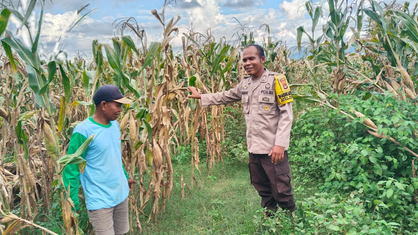 Dukung Ketahanan Pangan Nasional, Bhabinkamtibmas Desa Mumbu Pantau Lahan Jagung Warga