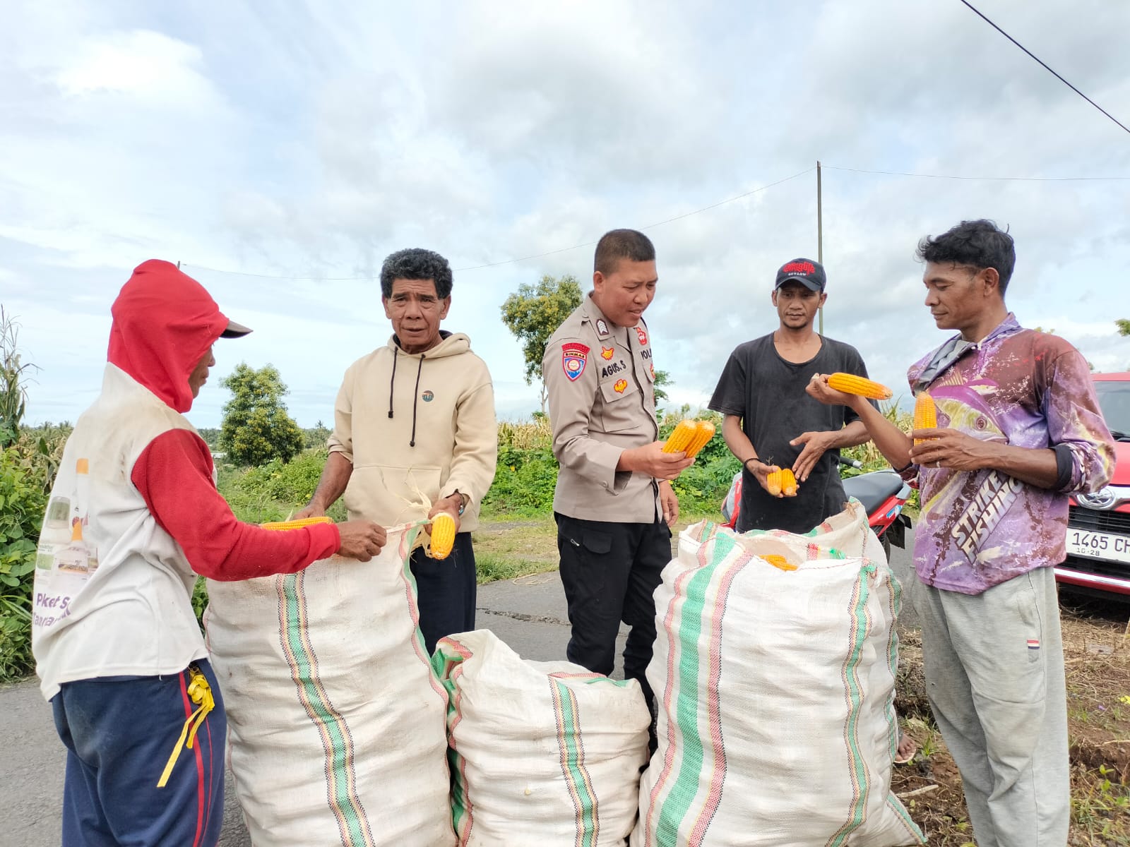 Dalam kegiatan tersebut, Bripka Agus Salim menyambangi sawah milik Bapak Pat yang tengah melaksanakan panen jagung. Selain mengecek langsung kondisi hasil panen, ia juga berdialog dengan para petani guna mengetahui kendala maupun perkembangan sektor pertanian di wilayah tersebut.