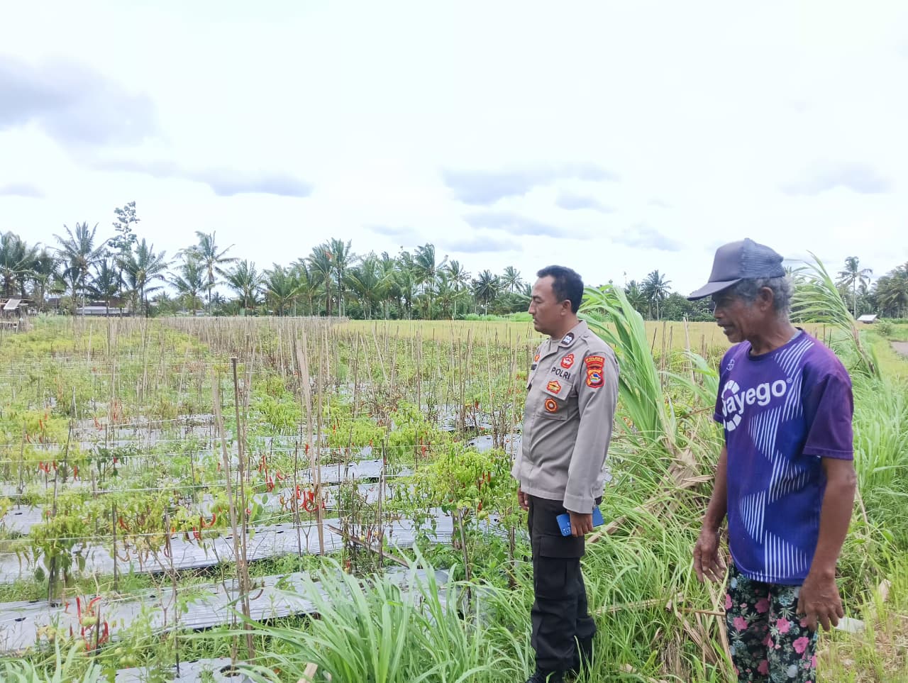 Dalam kegiatan itu, Aiptu M Wakhid Hasyim melakukan pengecekan terhadap tanaman cabai milik seorang petani bernama Lalu Padli. Tanaman cabai tersebut merupakan salah satu komoditas yang mendukung program ketahanan pangan di wilayah setempat.
