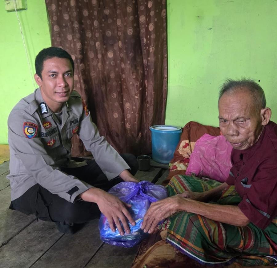 Bhabinkamtibmas Polsek Woha Polres Bima Kabupaten Polda NTB menunjukkan kepedulian sosial dengan memberikan bantuan sembako dan santunan kepada seorang lansia di Desa Binaannya.