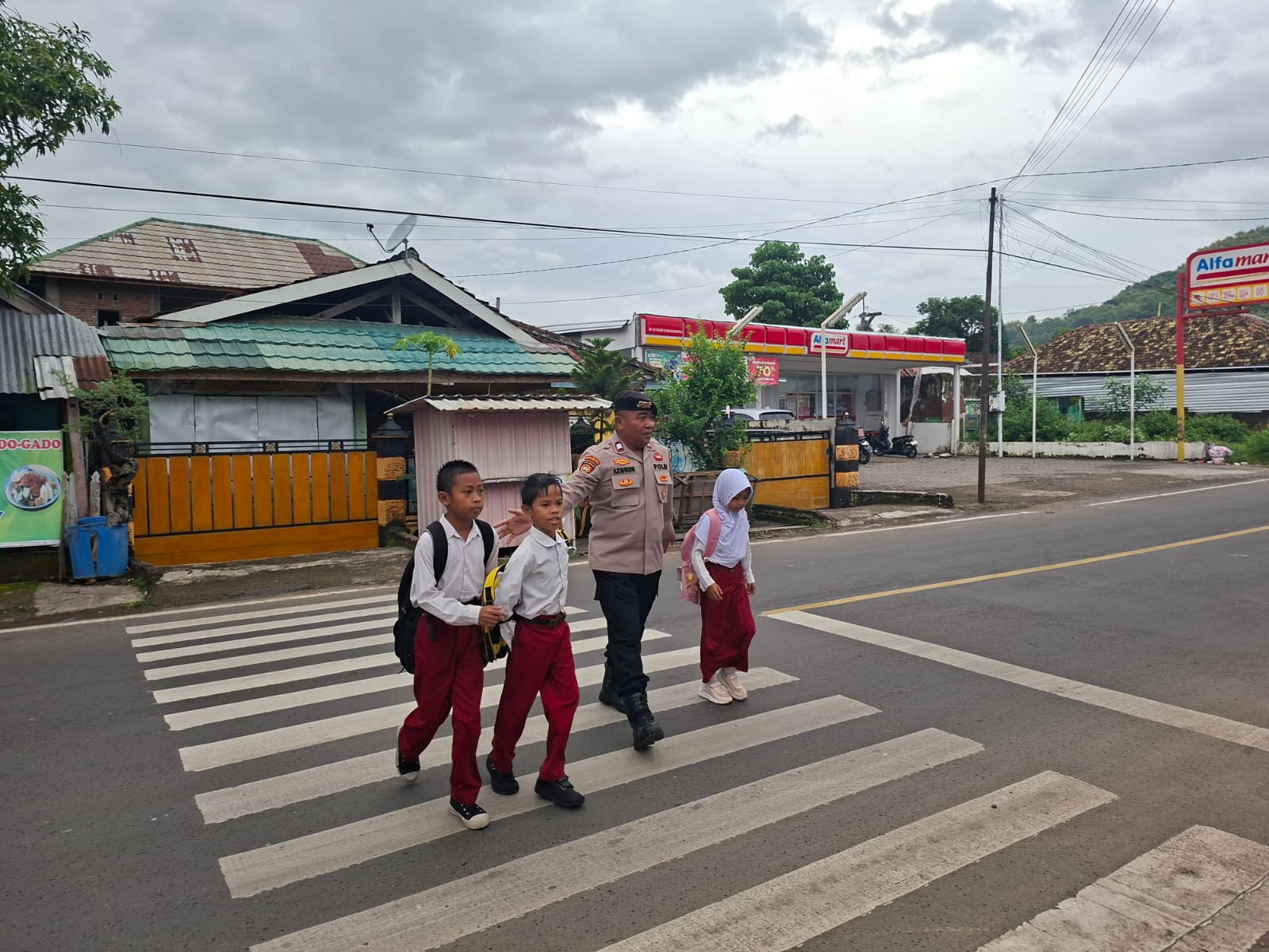Dalam kegiatan tersebut, personel kepolisian juga membantu para pelajar dan masyarakat yang hendak menyeberang jalan serta memastikan arus lalu lintas tetap tertib dan lancar.