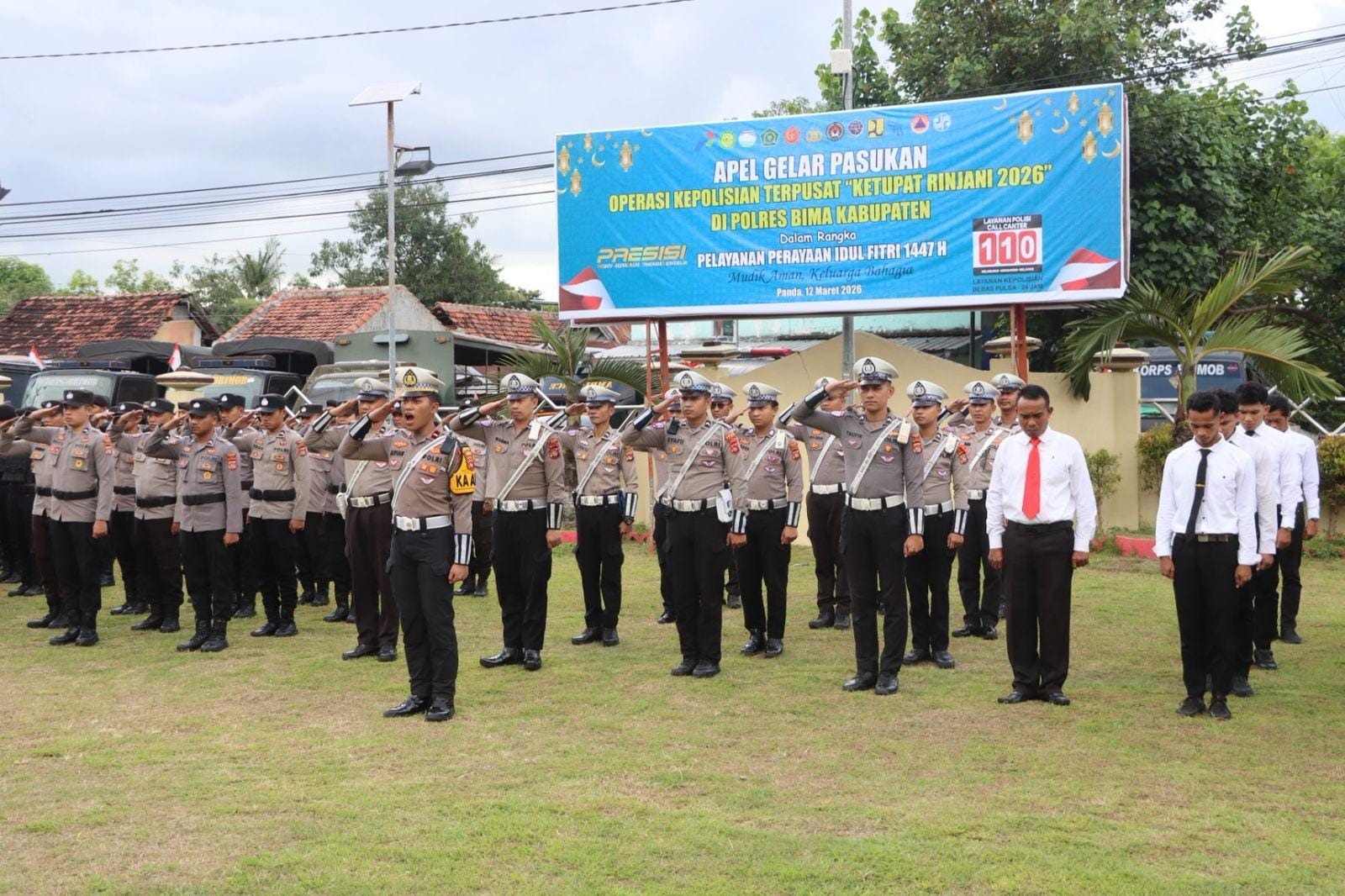 Kepolisian Resor Bima Kabupaten jajaran Polda NTB menggelar Apel gelar pasukan operasi ketupat Rinjani dalam rangka pengamanan perayaan idul Fitri 1447 H tahun 2026 M.