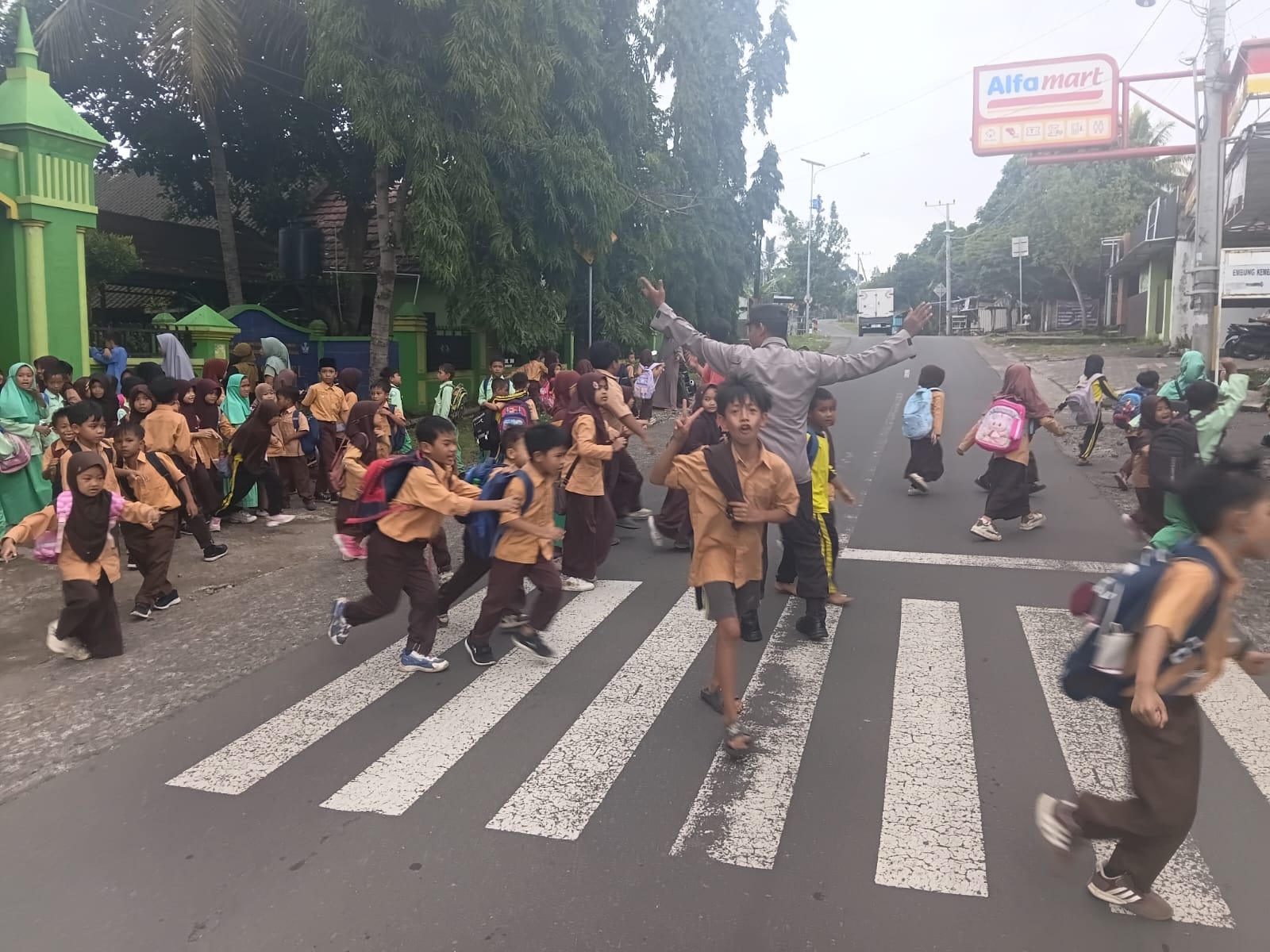 Petugas juga mengimbau para pengendara agar selalu berhati-hati saat melintas di kawasan sekolah serta mengurangi kecepatan kendaraan demi keselamatan para pelajar.