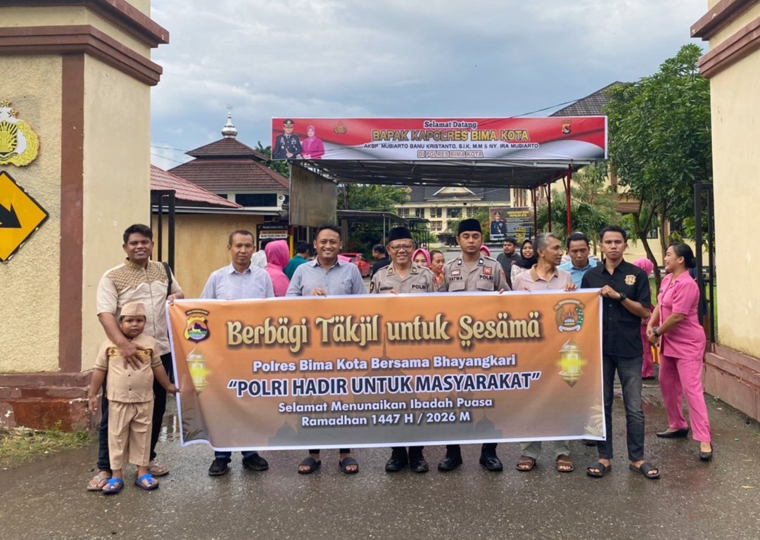 Kota Bima, NTB (15 Maret 2026) – Dalam rangka meningkatkan kepedulian dan mempererat kebersamaan dengan masyarakat di bulan suci Ramadhan, Satuan Reserse Kriminal (Sat Reskrim) Polres Bima Kota bersama Seksi Hukum (Sikum) dan Bhayangkari menggelar kegiatan berbagi takjil kepada masyarakat dan para pengguna jalan, Sabtu (14/3/2026).