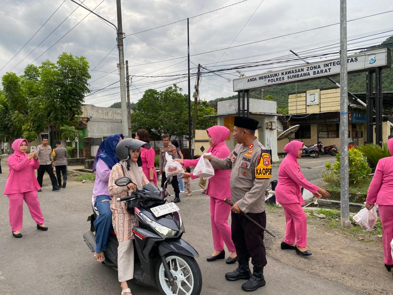 Sumbawa Barat – Dalam rangka meningkatkan kepedulian sosial di bulan suci Ramadan, Polres Sumbawa Barat bersama Bhayangkari Cabang Sumbawa Barat menggelar kegiatan berbagi takjil kepada para pengguna jalan yang melintas di Jalan Raya depan Mako Polres Sumbawa Barat, Senin,(16/03/2026).