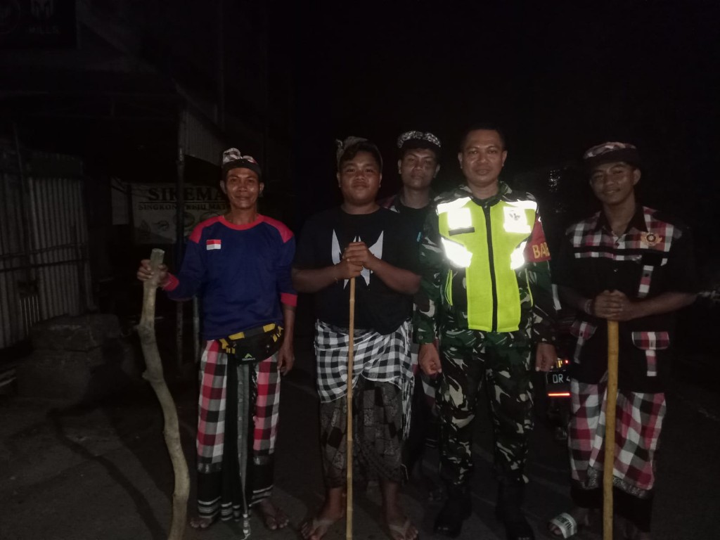 Dalam balutan suasana malam yang sunyi, mereka memastikan setiap sudut lingkungan tetap aman, tertib, dan kondusif, sehingga umat Hindu dapat menjalankan Catur Brata Penyepian dengan khusyuk.