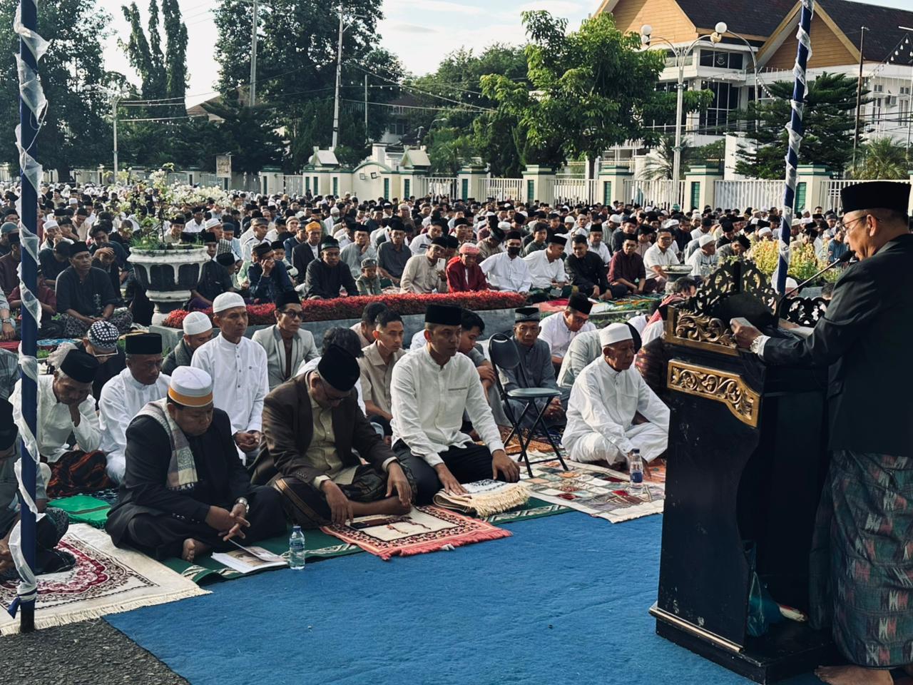 Suasana khidmat dan penuh kebersamaan tampak mewarnai pelaksanaan Sholat Ied, yang menjadi momentum mempererat silaturahmi antara pemerintah, aparat keamanan, dan masyarakat.