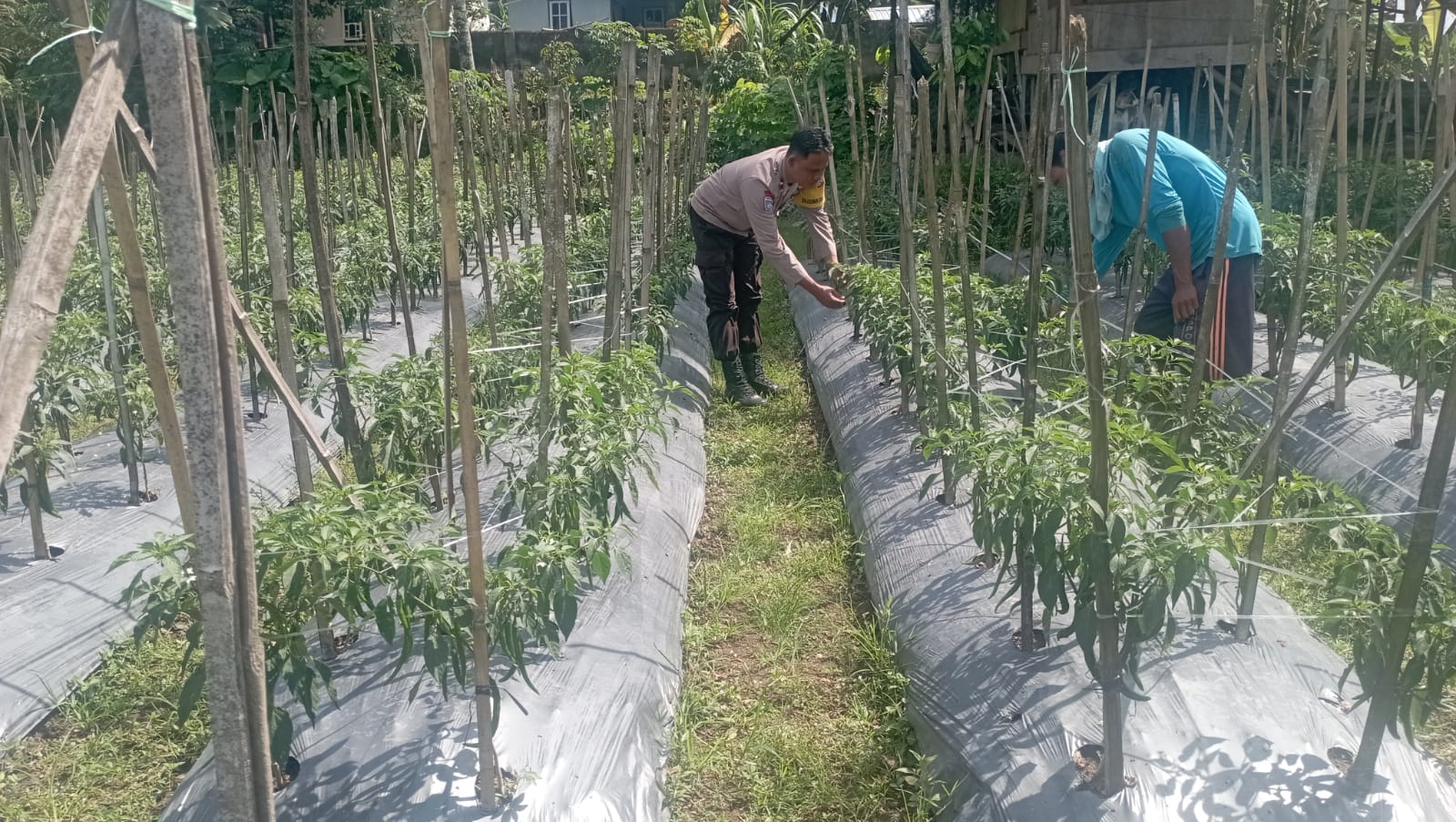 Dalam pelaksanaannya, Aipda Rodi H. bersama warga binaan melakukan pengecekan langsung terhadap lahan pertanian yang ditanami tanaman cabai sebagai salah satu komoditas pendukung ketahanan pangan masyarakat.