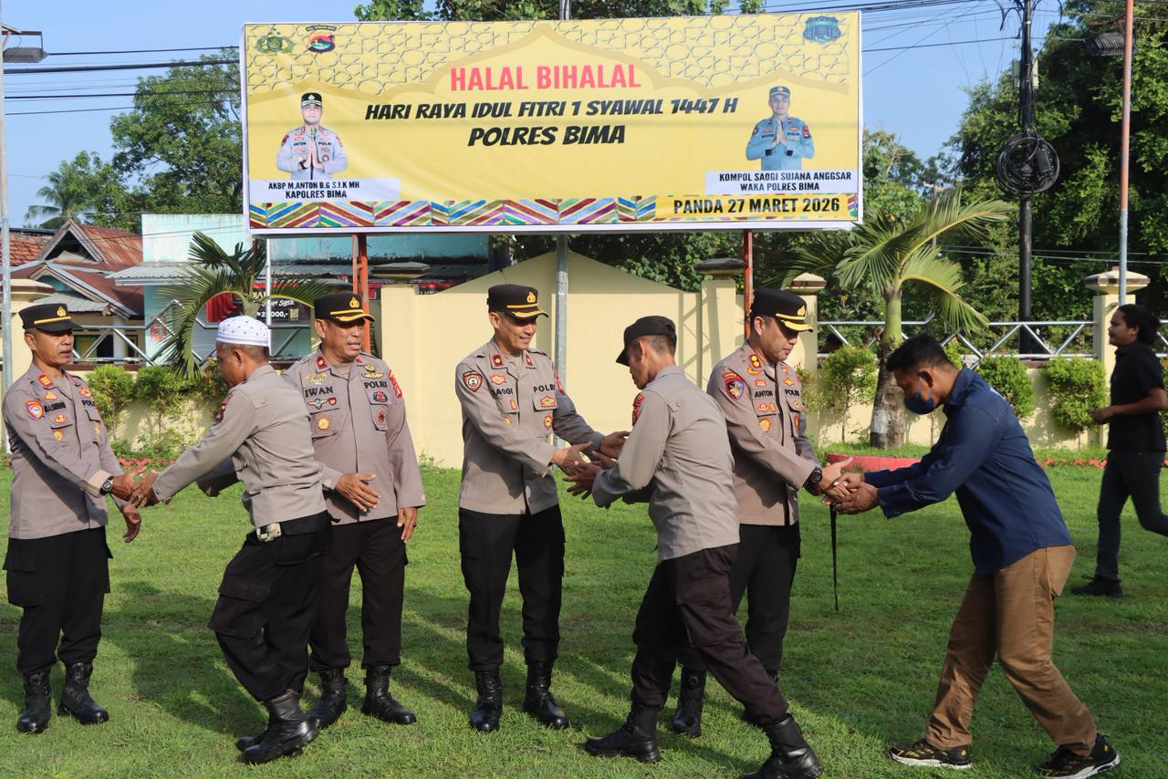 Dalam suasana penuh kebersamaan pasca Hari Raya Idul Fitri 1447 H, Kepolisian Resor Bima Kabupaten Polda NTB melaksanakan kegiatan halal bihalal di Lapangan apel Mapolres Bima Kabupaten Jum,at 27 Maret 2026. Pagi.