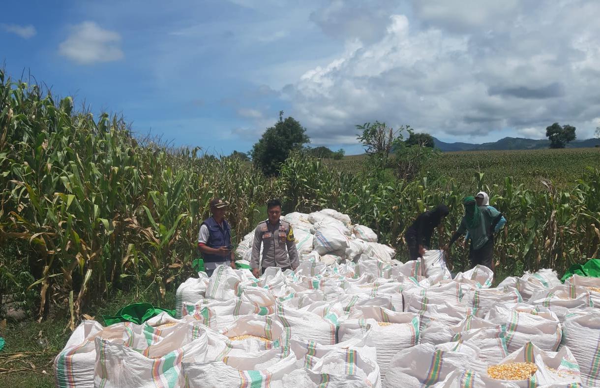Dalam rangka mendukung Program Ketahanan Pangan Nasional menuju Indonesia Emas, Bhabinkamtibmas Desa Nusa Jaya Polsek Manggelewa, BRIGADIR Lalu Topan WS, melaksanakan kegiatan pemantauan sekaligus pendampingan terhadap warga binaan yang sedang melaksanakan panen jagung di Dusun Muhajirin Utara, Desa Nusa Jaya, Kecamatan Manggelewa, Kabupaten Dompu, Selasa (31/3/2026) pukul 10.20 WITA hingga selesai.