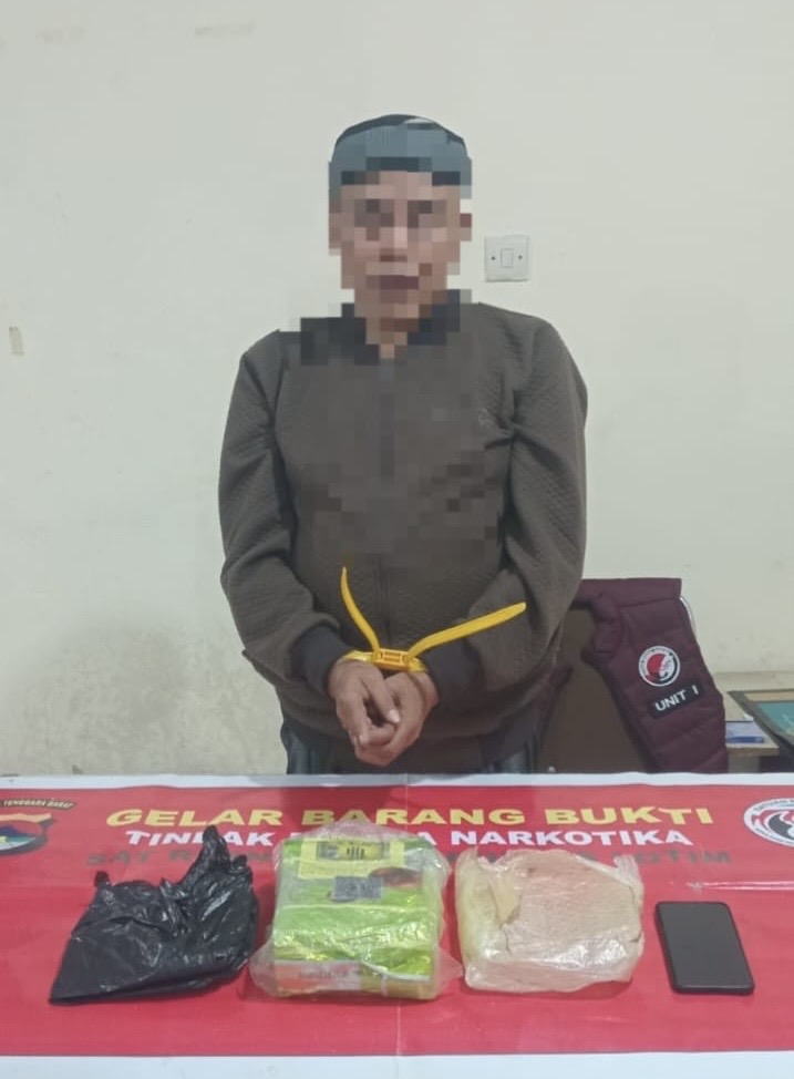Penangkapan ini dipimpin langsung oleh Kasat Resnarkoba Polres Lombok Timur, IPTU Fedy Miharja, S.H., bersama lima personel tim opsnal. Dari tangan terduga pelaku, polisi berhasil mengamankan barang bukti berupa sabu dengan berat bruto mencapai 1,080 gram. Selain itu, turut diamankan satu unit sepeda motor Mio, satu unit handphone Android, serta satu plastik kresek hitam.