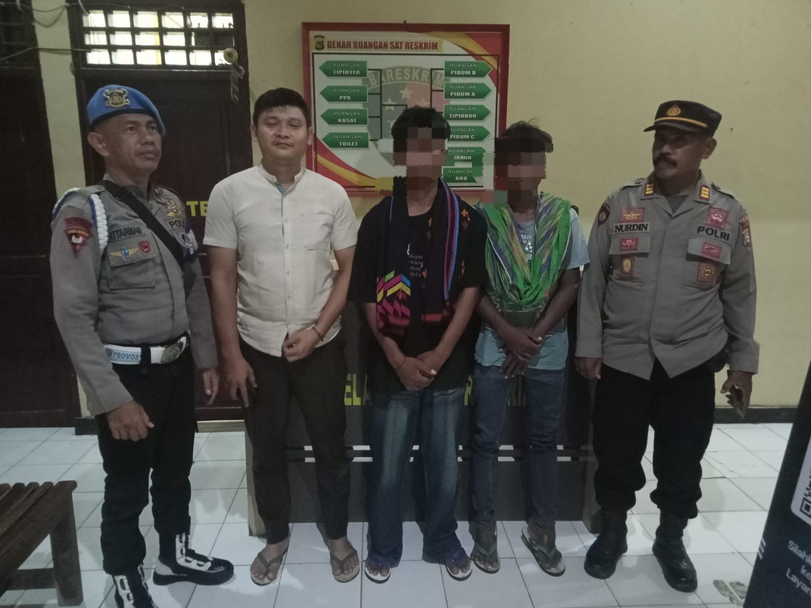 Setelah melakukan penyelidikan tepatnya pukul 18.00. Wita Kedua terduga pelaku yang masing masing berinisial AA (L/20) dan FI (L/19) warga Dusun Muku ini berhasil diringkus.