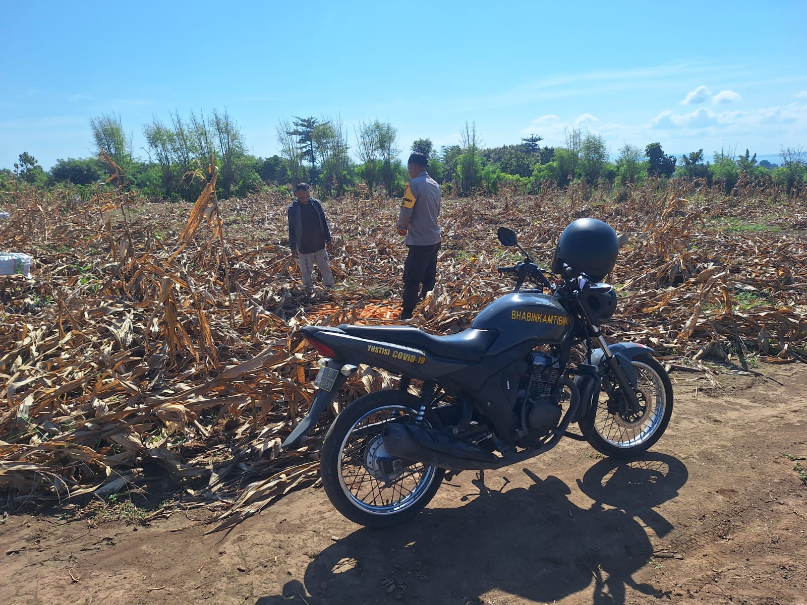 Dukung Ketahanan Pangan Nasional, Bhabinkamtibmas Desa Luk Turun Tangan Bantu Warga Panen Jagung