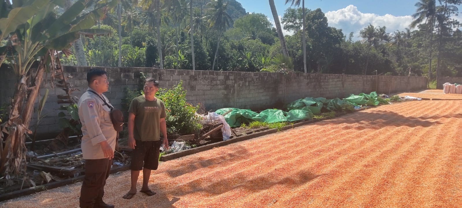 Dalam rangka mendukung Program Ketahanan Pangan Nasional menuju Indonesia Emas 2045, Bhabinkamtibmas Desa Pekat Polsek Pekat, Brigadir Syamsuri Akhmadi, melaksanakan kegiatan pemantauan terhadap aktivitas masyarakat yang sedang melakukan penjemuran hasil panen jagung di Dusun Latonda I Barat, Desa Pekat, Kecamatan Pekat, Kabupaten Dompu, Minggu (5/4/2026) sekitar pukul 11.30 WITA.
