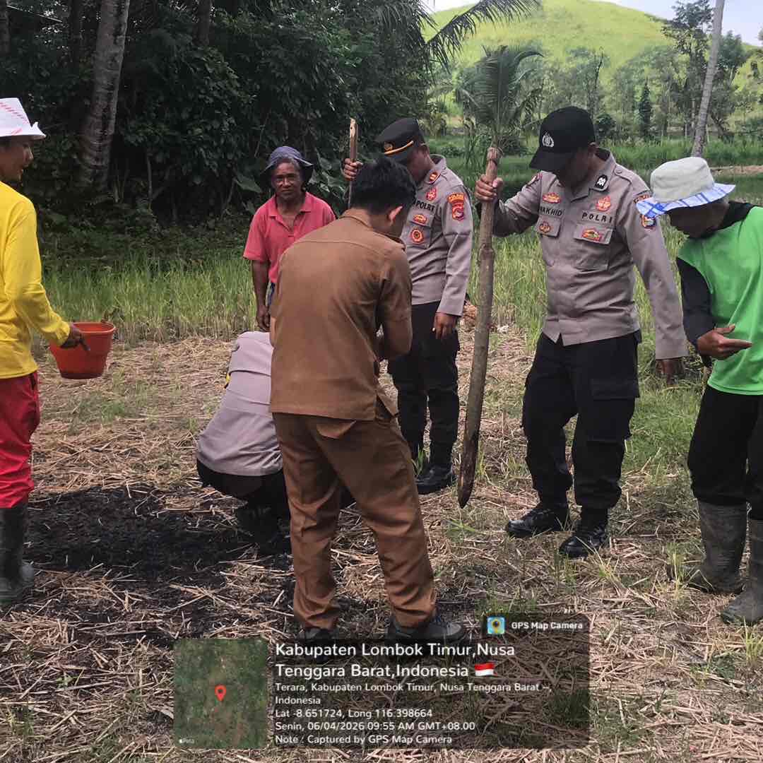 Lombok Timur – Kapolsek Terara IPTU M Rofi’i Suriadi, SH bersama jajaran melaksanakan kegiatan penanaman jagung di Dusun Selagik Utara, Desa Selagik, Kecamatan Terara, Kabupaten Lombok Timur. Kegiatan tersebut berlangsung mulai pukul 10.00 Wita hingga selesai, dengan melibatkan kelompok tani setempat. Senin (6/4/2026)