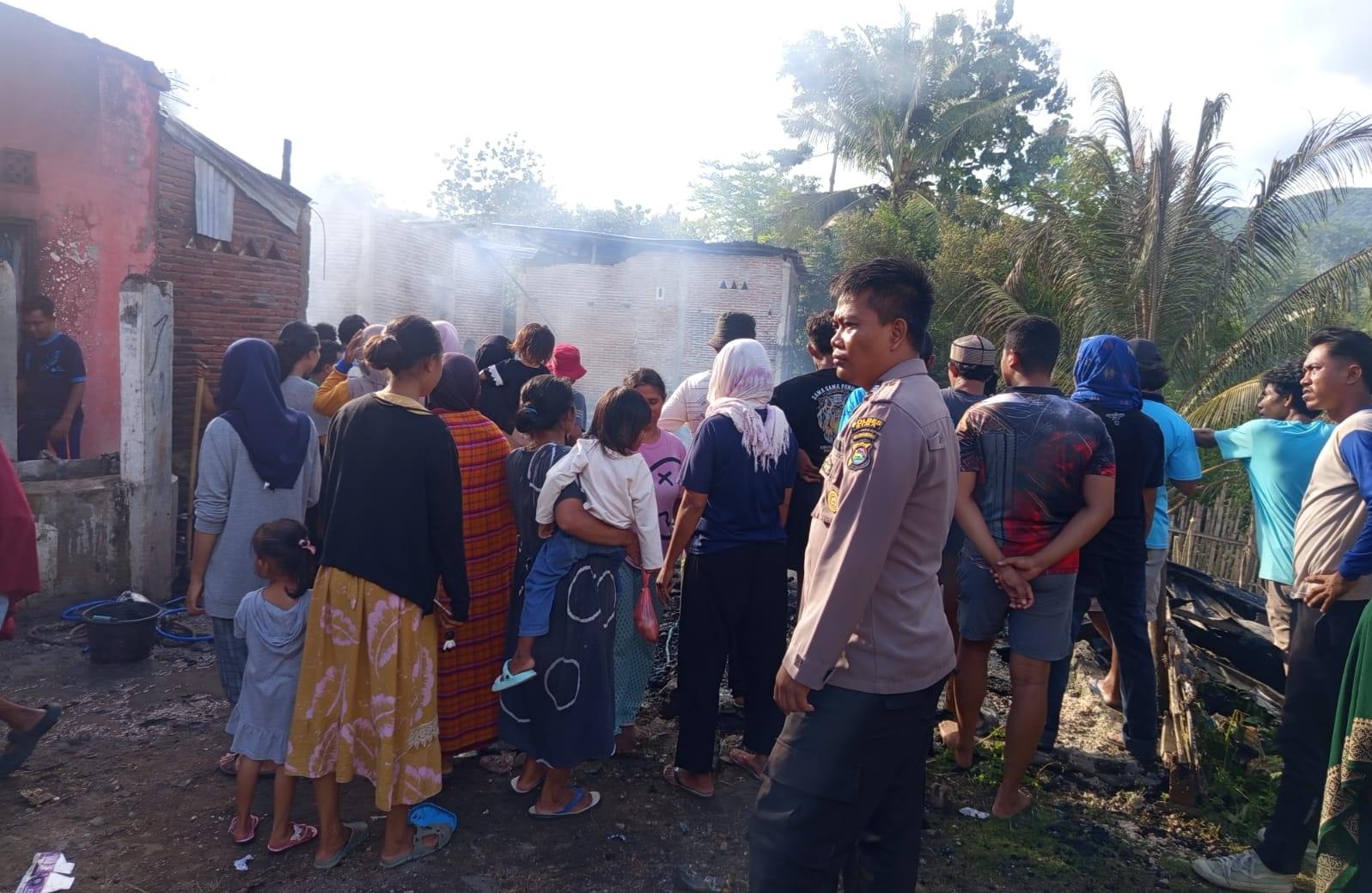 Diduga Konsleting Listrik 6 Unit Rumah di Desa Tolotangga Terbakar Polsek Monta Polres Bima Kabupaten Bersama Warga Bantu Padamkan Kobaran Api