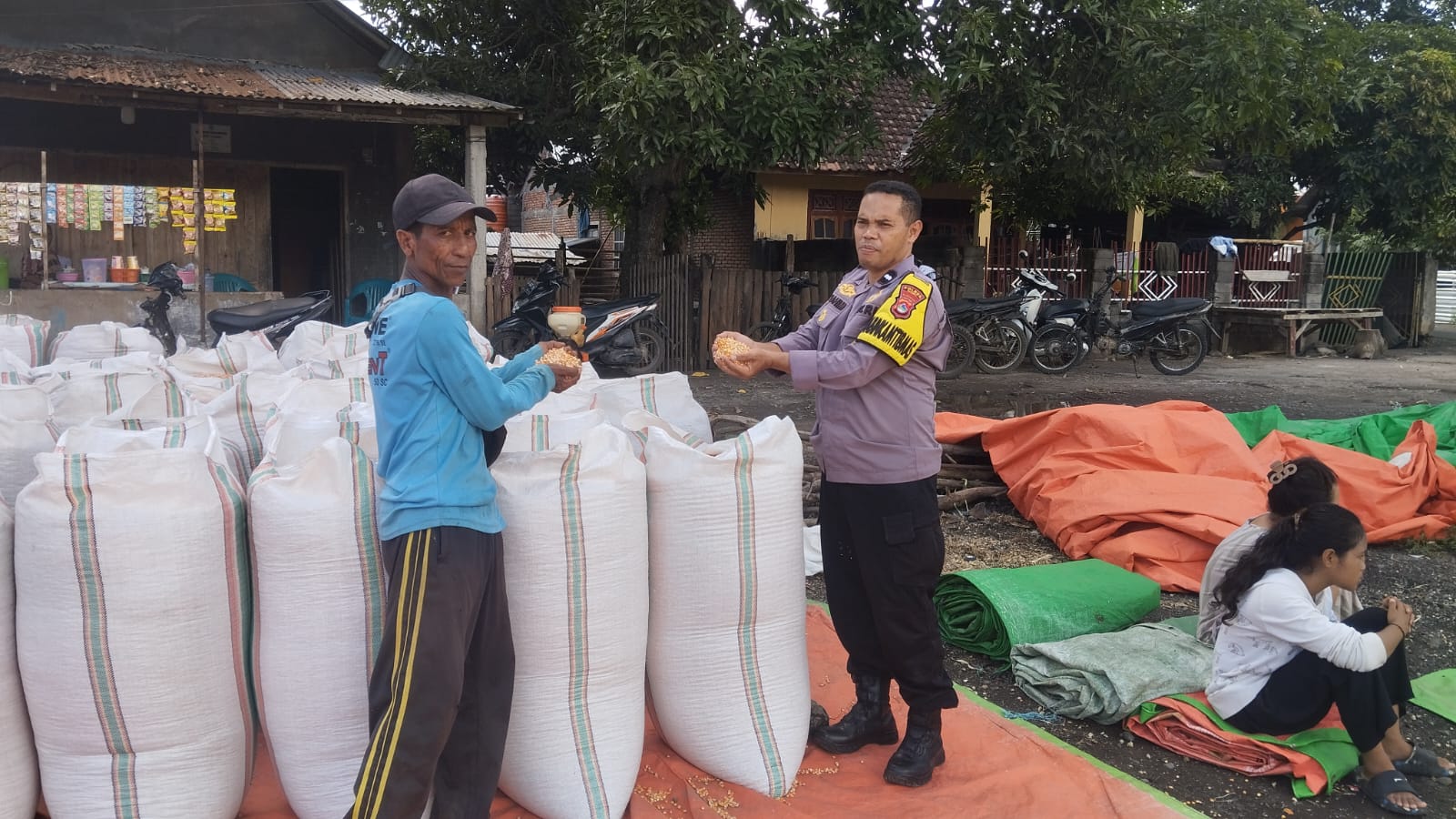 Dalam kesempatan tersebut, AIPDA Ibrahim tidak hanya melakukan pemantauan, namun juga turut membantu warga dalam proses penjemuran jagung. Kehadiran Bhabinkamtibmas di tengah masyarakat diharapkan mampu memberikan rasa aman serta meningkatkan semangat para petani dalam mengelola hasil pertanian mereka.