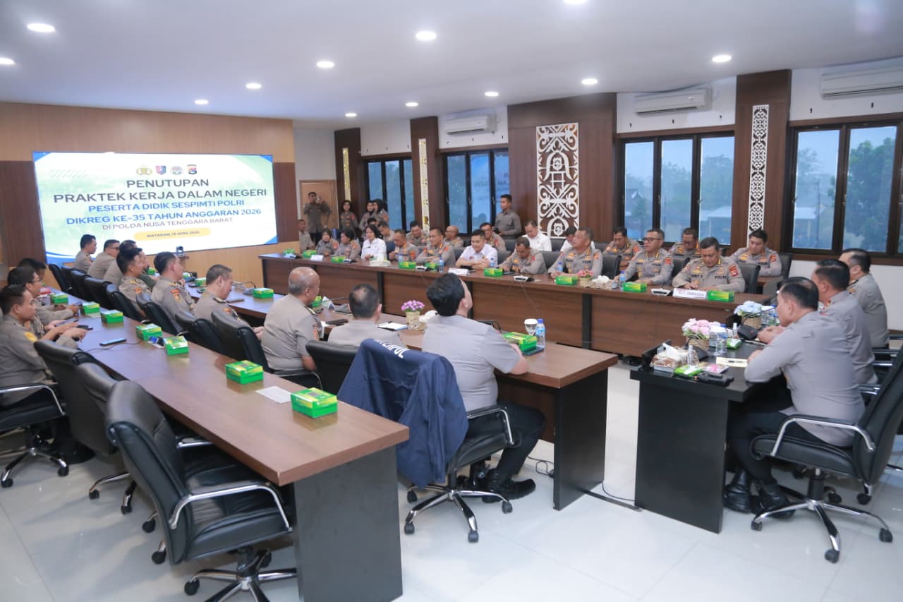 Mataram, NTB – Kapolda NTB Irjen Edy Murbowo, SIK., secara resmi menutup rangkaian kegiatan Praktik Kerja Dalam Negeri (PKDN) Sispemti Polri Dikreg ke-35 Tahun Anggaran 2026 yang telah dilaksanakan di wilayah hukum Polda NTB, Jumat (17/04/2026).