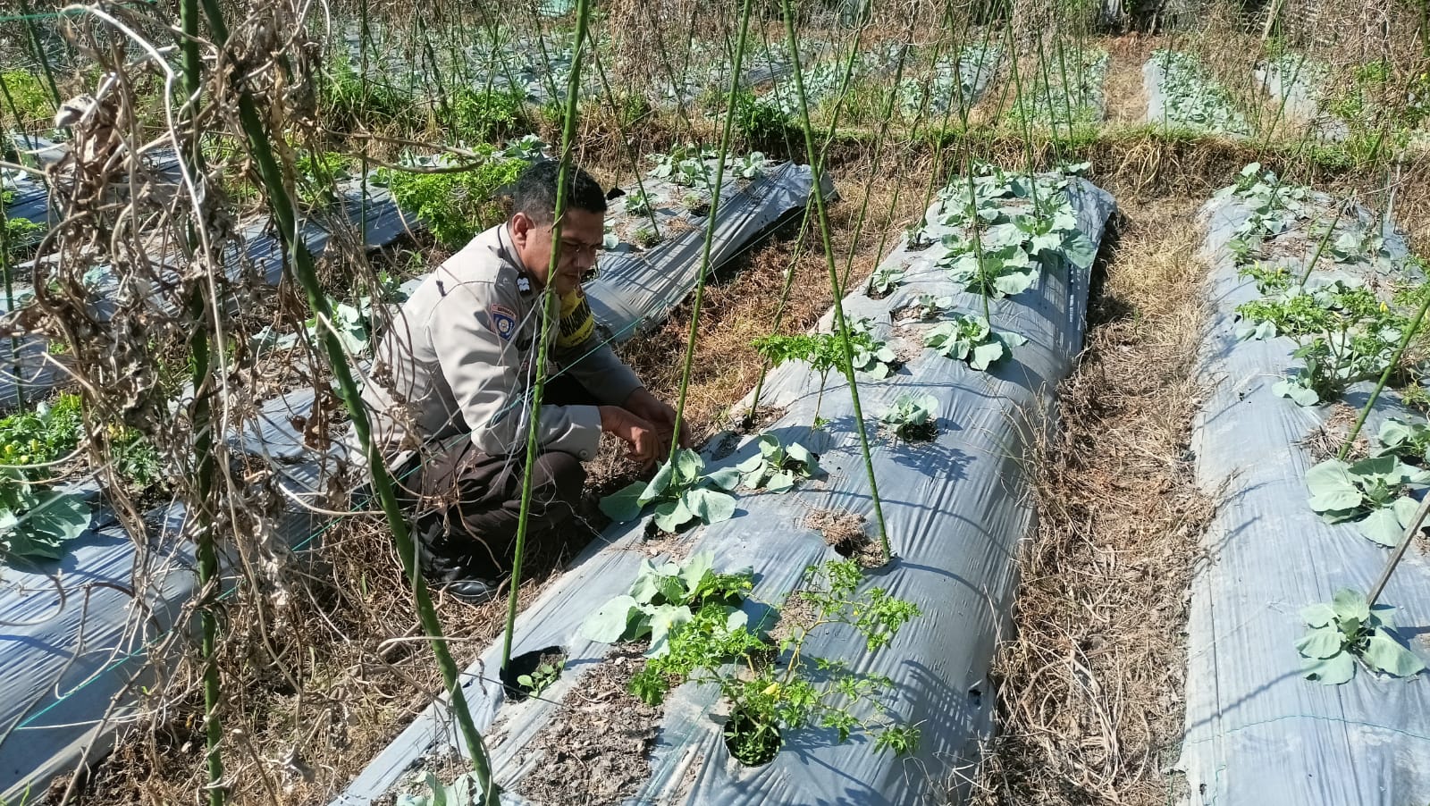 Bhabinkamtibmas Lendang Nangka Utara Cek Lahan Ketahanan Pangan Bergizi di Masbagik