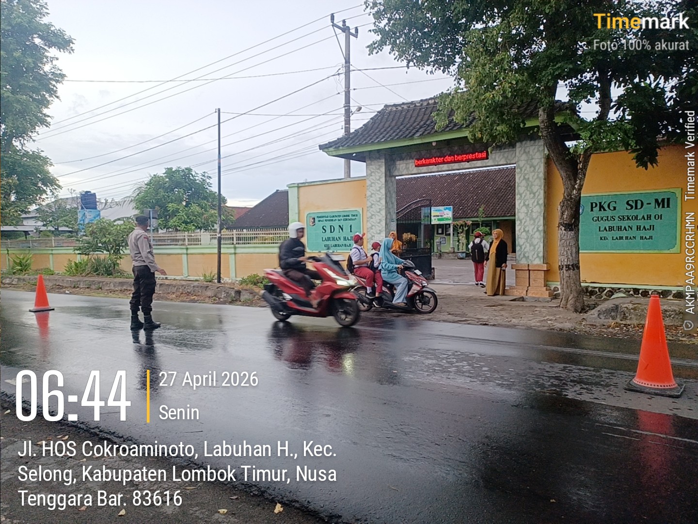 Lombok Timur –  — Kapolsek Labuhan Haji bersama anggota Polsek Labuhan Haji melaksanakan kegiatan Rawan Pagi (strong point), bertempat di depan SDN 1 Labuhan Haji.Senin (27/04/2026). pada pukul 06.30 Wita.