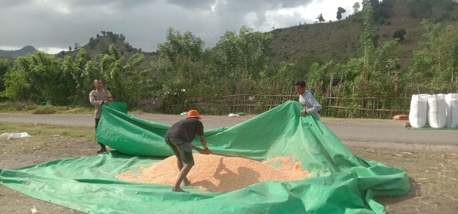 Dalam rangka mendukung Program Ketahanan Pangan Nasional menuju Indonesia Emas 2045, Bhabinkamtibmas Desa Rababaka Polsek Woja, AIPTU Purwanto, melaksanakan kegiatan pemantauan lahan dan hasil panen jagung milik warga binaan.